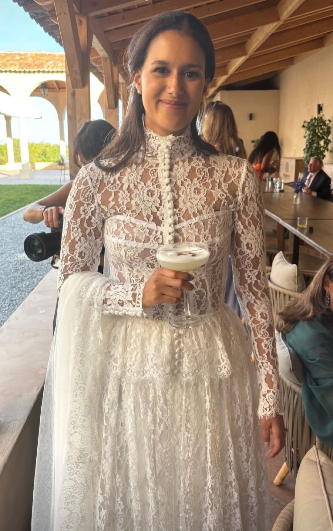 Modelo e locutora Cristina Caeiro, vestido renda, stock tamanho 38